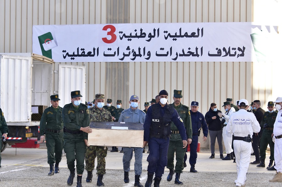 وأوضحت وزارة الدفاع الوطني، أن عملية إتلاف هذه المخدرات تمت باحترام شروط السلامة ومراعاة حماية البيئة وبالتقيد بالأطر والآليات التطبيقية لمثل هذه العمليات.